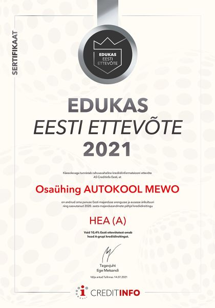 Meil on olemas kõik selleks, et tagada tipptasemel autokoolitust: meie kvaliteedi tagajaks on 26-aastane kogemus antud alal. MEWO autokoolis saate õppida A-, B-, C-, D-kategooria ning samuti ADR (ohtlike veoste transport) kursustel. Meil teostatakse veoauto-, bussi- ja taksojuhtide kutseettevalmistus ning täiendõpe. Te saate läbida ka teisi kursusi: pimedasõidu algkursus, libedasõidu- ja esmaabikoolitus. MEWO autokool asub Ida-Virumaal, aga ADR-kursused korraldame ka Tallinnas.